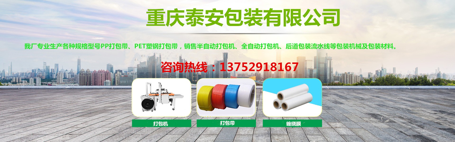 重慶泰安包裝有限公司(電話:13752918167)是專業(yè)生產(chǎn)各種打包帶、塑鋼帶、纏繞膜、膠帶,銷(xiāo)售打包機(jī)、纏繞機(jī)、封箱機(jī)、無(wú)人化流水線等各種包裝機(jī)械、包裝制品、包裝材料一體化的優(yōu)秀包裝企業(yè),始終堅(jiān)持“穩(wěn)步擴(kuò)張、精益管理”的方針,堅(jiān)持“換位思考,了解客戶需求,主動(dòng)服務(wù),超越客戶期待”的服務(wù)理念,以熱忱的服務(wù)、優(yōu)良的品質(zhì)、靈活的機(jī)制、創(chuàng)新的技術(shù),向各新老客戶提供最優(yōu)質(zhì)、優(yōu)價(jià)的產(chǎn)品和服務(wù),具有對(duì)系列產(chǎn)品自主研發(fā)創(chuàng)新能力,能夠獨(dú)立根據(jù)用戶要求制版打樣。近十年來(lái)受到廣大客戶的信任,產(chǎn)品銷(xiāo)售遍及全國(guó)各大城市,與客戶形成自由平等、互利互惠的戰(zhàn)略合作關(guān)系,平均年銷(xiāo)售量2000多噸。